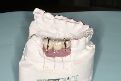 What is a retrieval matrix? A retrieval matrix is a simple vacuum-formed (“suck down”) that you can generate chairside by using a thin clear thermoplastic sheet conformed over the final implant restorations while seated on the master model. The purpose of a retrieval matrix is to act as a simple, precise guide to drill into a cement-retained implant crown should a future need arise to access the abutment to either re-tighten a loose screw or to remove a crown with porcelain fracture. The retrieval matrix should be stored in your office along with the master model or given to the patient to be stored safely. We routinely fabricate the retrieval matrix and have used it numerous times to resolve prosthodontic complications. This will save you a tremendous amount of time and burs from cutting off an old implant crown and can avoid destroying the crown. You can access the abutment screw within just a few minutes using the retrieval matrix!