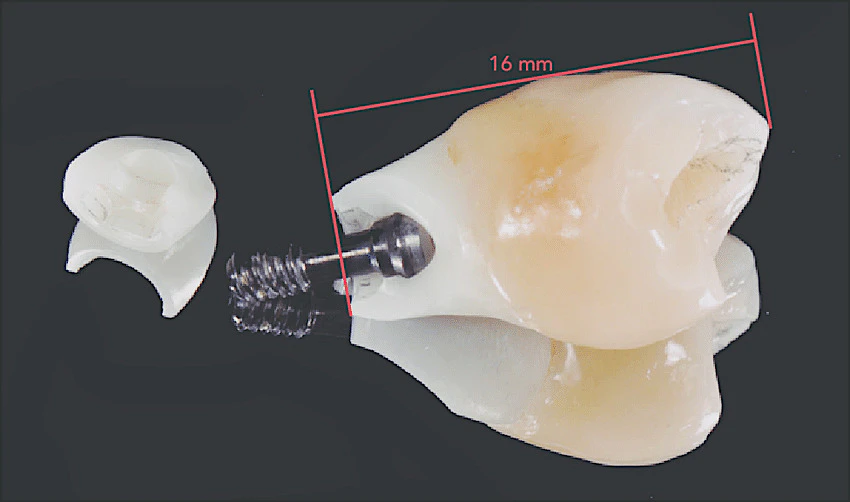 2) For Narrow diameter implants with a cement-retained crown, do NOT use a zirconia abutment as it has a high incidence of fracture. Instead, use a custom titanium abutment that is anodized with gold color for better esthetic result.