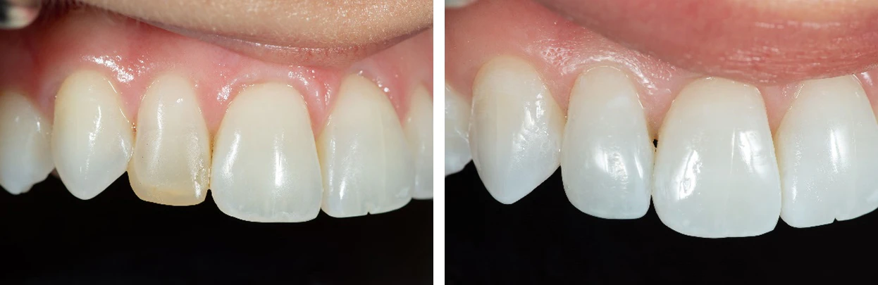 This treatment was completed in one appointment for a single chairside direct composite veneer.